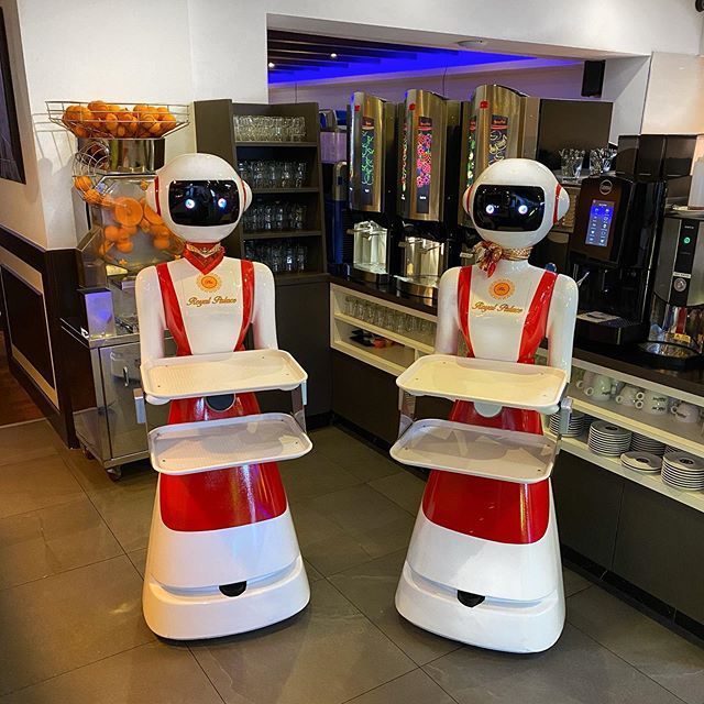 Slår man et smut forbi den hollandske badeby Renesse, kan man opleve at blive betjent af to robotter i kjole, som ejeren heldigvis allerede havde importeret fra Kina, inden Corona-krisen satte ind.